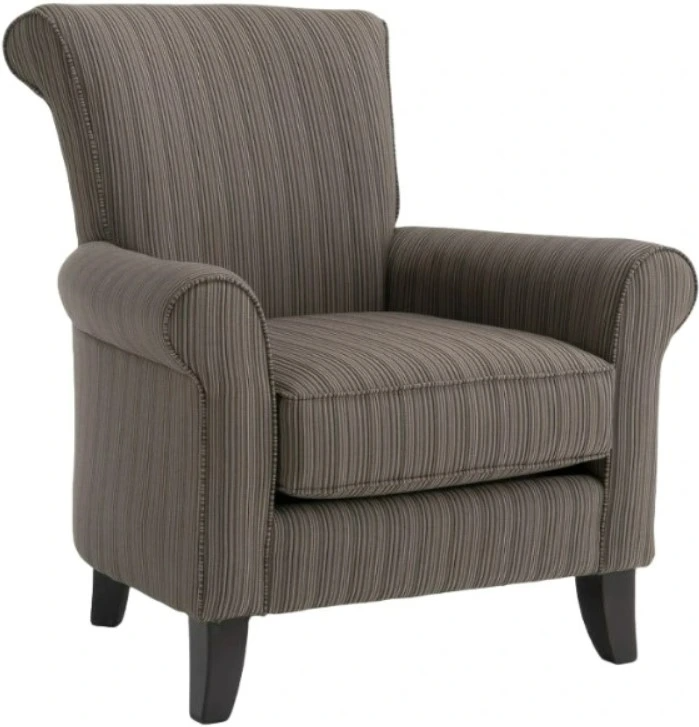 This chair with a rolled back and rounded arms is perfect for a more traditional lifestyle. Curved wood legs on a reinforced hardwood frame provide a firm yet flexible support system.Read More