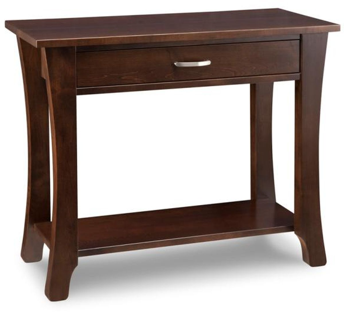 The Yorkshire collection reinvents the Shaker look adding sweeping curves to create a distinctive, rounded design. Canadian-made from solid wood. Handstone Yorkshire Sofa Table with Shelf and 1 Drawer - 36Wx30Hx16DRead More