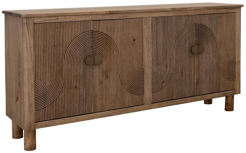 The Rainbow Console is skillfully crafted from melina wood. It showcases exquisitely designed doors that artfully replicate the graceful shape of a rainbow. Take a moment to admire the intricate wood grain detailing, perfectly complemented by the console's elegantly rounded legs.Read More
