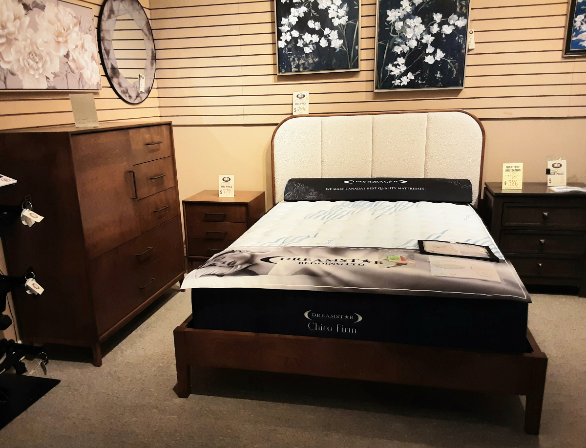 This 3-piece bedroom set from JML Furniture includes a Queen platform bed, 1 nighstands and a door Chest. . Made in Canada.Read More