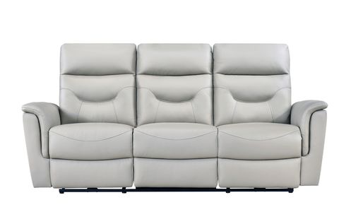 Relax in comfort in this sleek, Leather everywhere you touch power reclining Sofa. The beautiful silver colour adds the perfect elegant touch to any room. Integrated USB ports allows you to charge your devices while you relax.Read More
