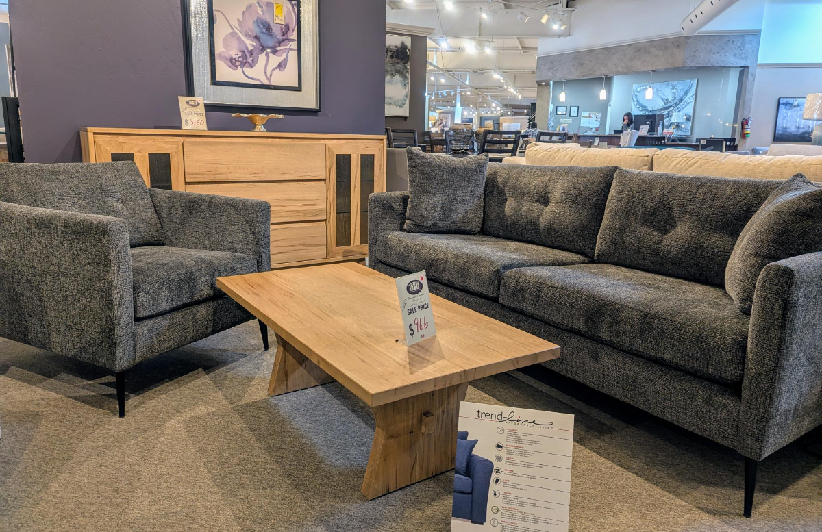 This sofa combines flared arms with tailored detailing to create a timeless design. Extra wide modern seating offers inviting comfort. Button detailing in the the back accentuates the charcoal fabric that is neutral enough for any spaceRead More
